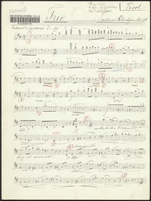 100103 108448 1915 785.7193 9 p. : op. 76 / Julius Röntgen BACH, JOHANN SEBASTIAN |f [op een thema van] CJX9267-0001 Delen: 1. Vivace e giocoso 2. Un poco andante 3. Un poco allegretto e scherzando 4. Passepied / op een thema van J.S. Bach Ja (voor leden) Kamermuziek Partijen RÖNTGEN, JULIUS |f [componist] SOM-011997 Trio Trio's, strijkers (3), op. 076, D gr.t. Voor strijktrio. - Toonsoort: D gr.t. - Jaar van comp.: 1915 l partijen str3