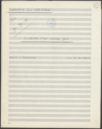 14 p. 1955-12-29 337541 9/8346 AVRO-RA BRODSKY BRODSZKY, NICHOLAS Ensemble Gerard van Krevelen (nieuw) I'll never stop loving you IX027 Instrumentaal Ja (voor leden) Jo van Maas MAAS, JO VAN ORK SOM-001640 partituur+partijen