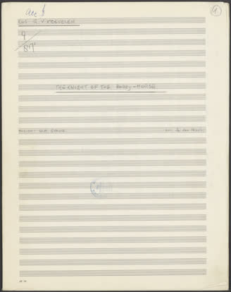 18 p. 1955 337659 9/8171 AVRO-RA D.A. Evans Ensemble Gerard van Krevelen (nieuw) IX027 Instrumentaal Ja (voor leden) Jo van Maas MAAS, JO VAN ORK SOM-001718 The knight of the bobby-horse partituur+partijen