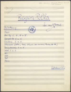 13 15228 166 1956-02-03 510807 9 p. Arrangement Cascade Orkest Ja (voor leden) Met zang Regen-Polka SOM-031211 WOUD, MARINUS VAN 'T WOUD, MARINUS VAN 'T |f [componist]