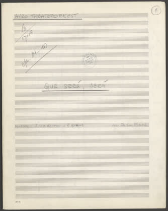 13 17118 1956-10-14 1c |a Sl 25 p. 544865 AVRO's Theaterorkest Arrangement Ja (voor leden) LIVINGSTON, JAY |f [componist] MAAS, JO VAN Que será, será |h (in C) SOM-047832